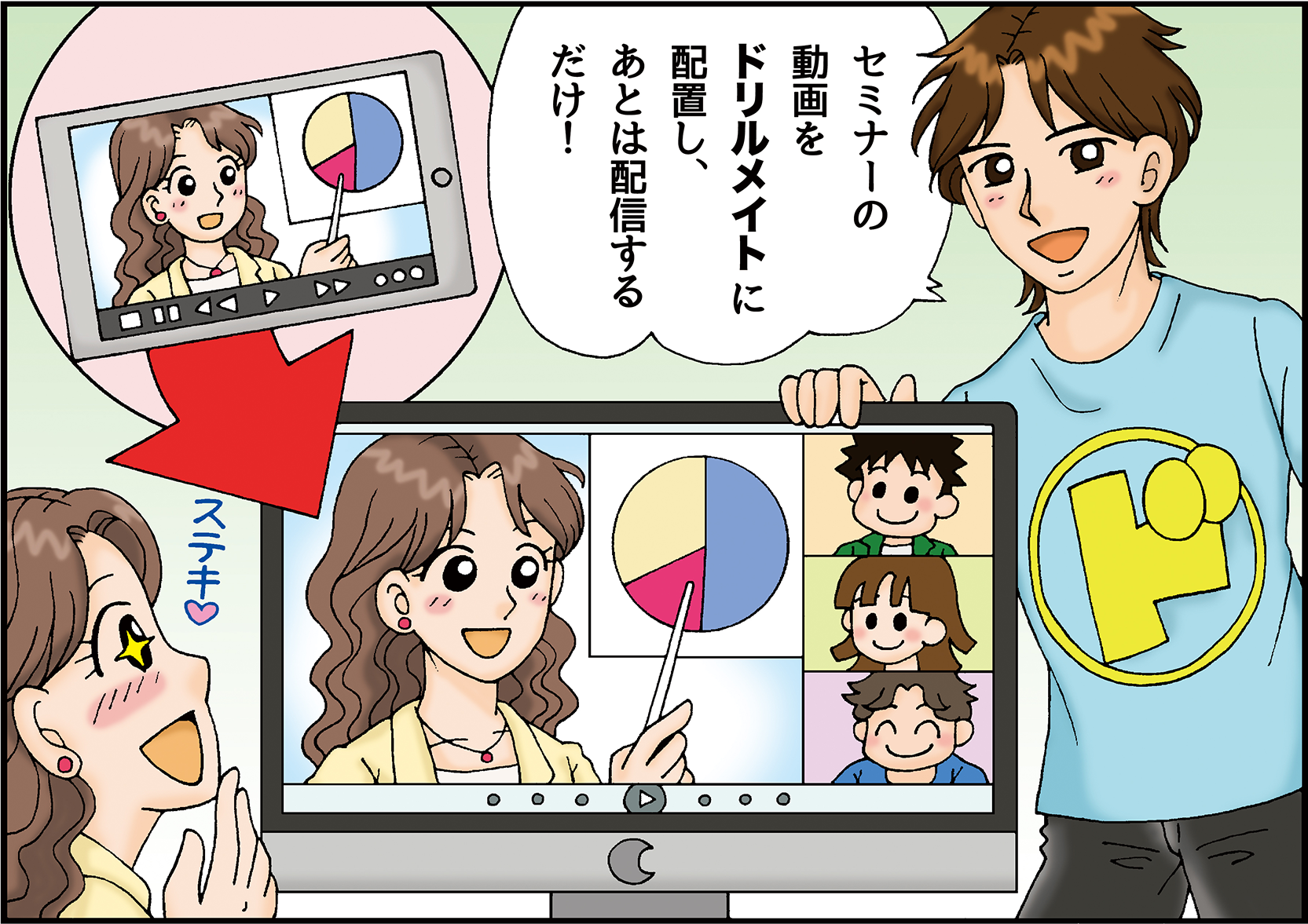 そんな時におすすめしたいのが、ドリルメイトまたはドリルメイトProを利用した講義の動画配信です。