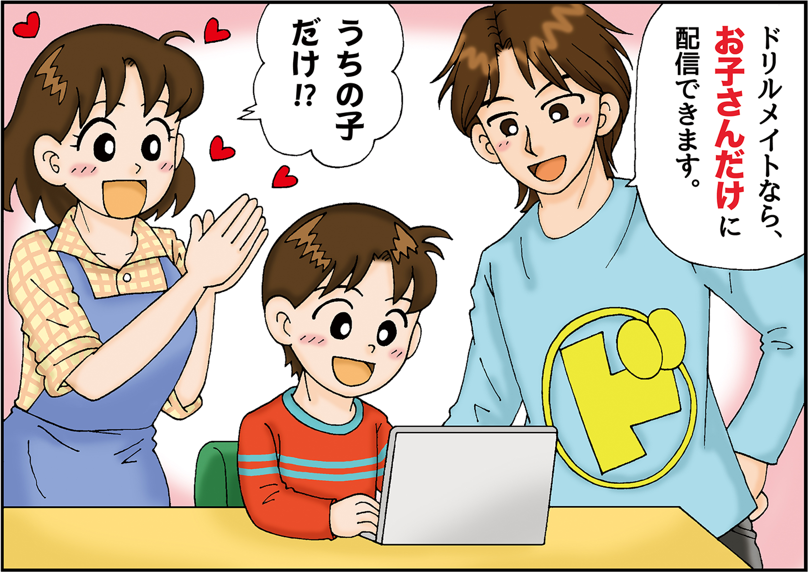 ペーパー教材に興味を持ってくれなかったお子さんも、スマートフォンやタブレットなら、興味を持ってくれるかもしれません。「限定公開」機能を利用すれば、あなたのお子さんだけに配信することができます。