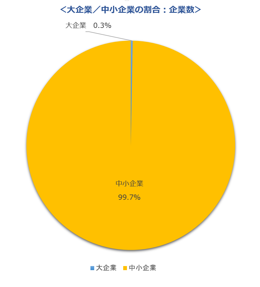 2016年の「経済センサス活動調査」によると、中小企業(※注1)の割合は、企業数で99.7%、従業員数で68.8%を占めており、沢山の企業がeラーニングを検討しはじめたり、導入をし始めたということになります。